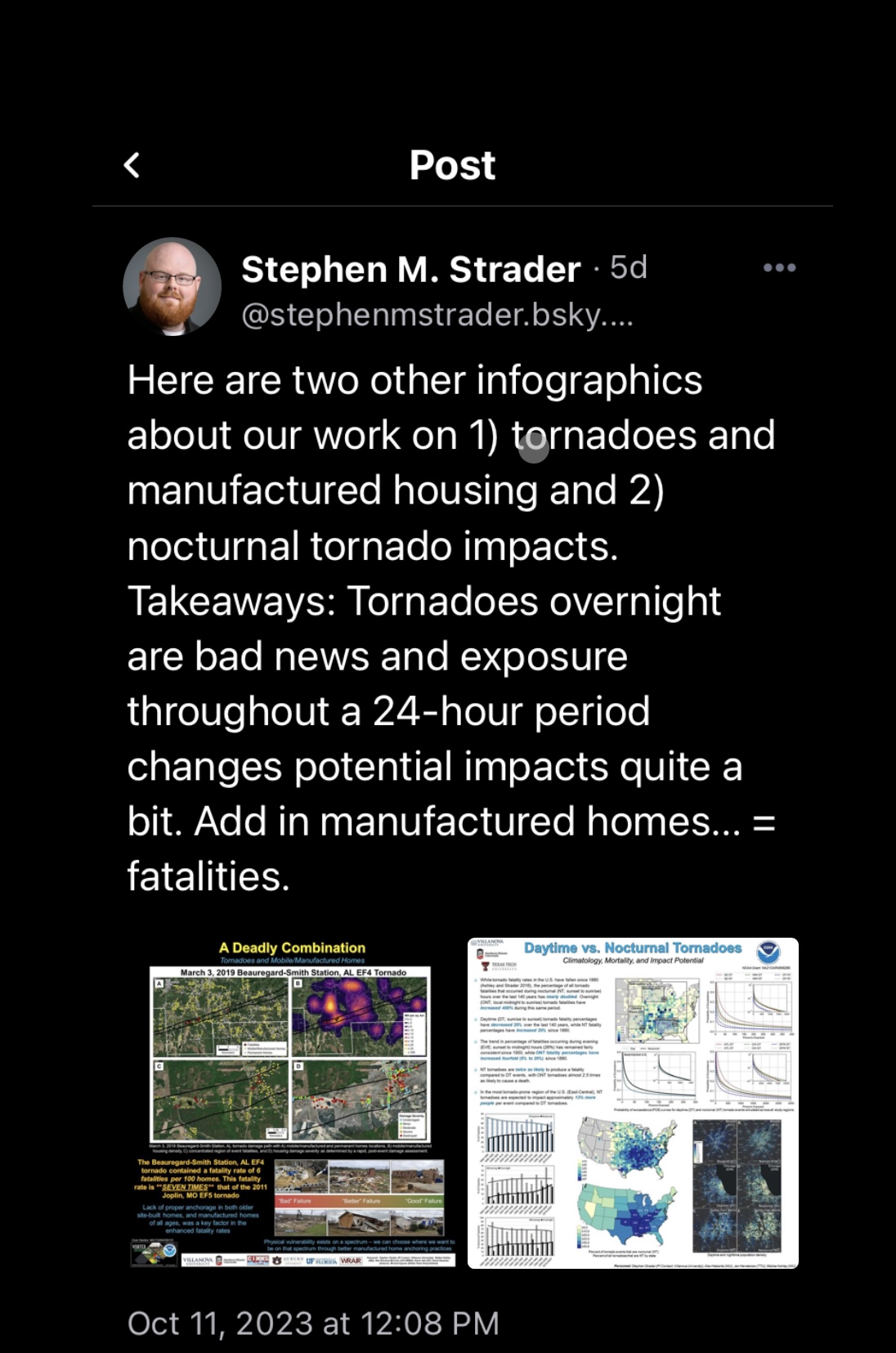 A recent study took a look into daytime vs. nocturnal tornado vulnerability. Here’s a quick summary from one of the authors.